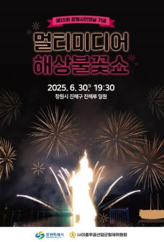 [경남도민뉴스=박민호 기자] 창원특례시는 오는 6월 30일 오후 8시 30분에 진해루 앞 해상에서 ‘제15회 창원 시민의 날 기념 멀티미디어 해상불꽃쇼’를 개최한다고 밝혔다.