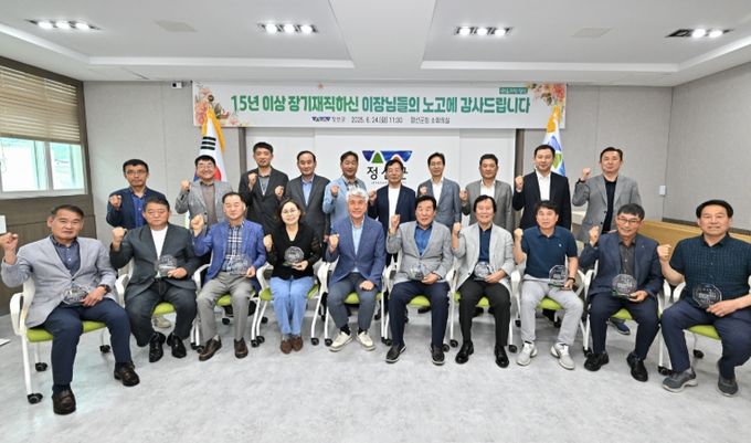 이날 감사패를 받은 이장들은 △정선읍 전영록(봉양10리), 전강표(신월2리), 황태석(북실4리), 이문규(여탄리), 유환기(봉양9리) △사북읍 백병도(사북6리) △신동읍 이상규(조동4리) △임계면 김종구(송계2리), 박옥순(송계1리), 우정근(송계7리) 이장 등 총 10명이다. 이들은 마을 환경 개선, 취약계층 돌봄, 주민 숙원사업 해결 등 다양한 분야에서 지역 사회 발전에 크게 기여해왔다.