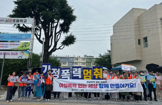[경남도민뉴스=최미정 기자] 양산시 여성폭력방지위원회는 24일 서창서장 일원에서 시민들을 대상으로 여성폭력 추방 캠페인을 펼쳤다.