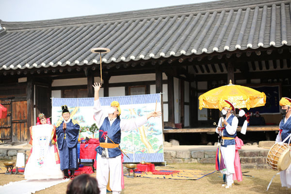 함양문화원(원장 정상기)은 11월 21일 지곡면 개평마을 하동정씨 고가에서 하객 등 50여명이 참석한 가운데 '꼬신내 풍기는 잔칫날'의 하나로 마련된 전통혼례를 개최했다.