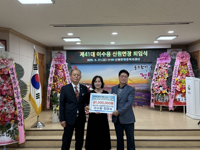 특히, 이날 퇴임식에서는 신원면지역사회보장협의체가 운영하는 신원 나눔냉장고에 후원금 100만 원을 전달하며 마지막까지 지역을 위한 따뜻한 나눔을 실천해 의미를 더했다.