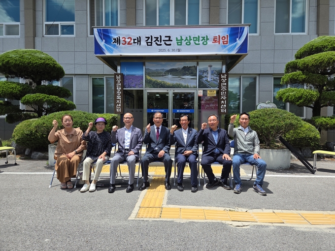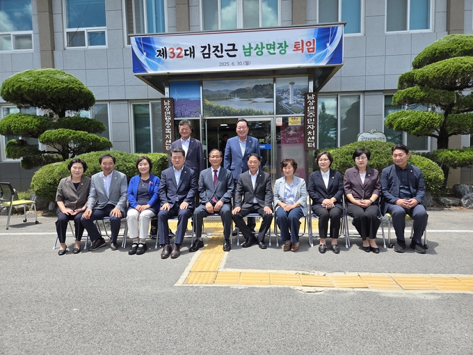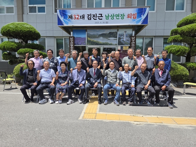 김진근 남상면장은 퇴임사에서 “공직의 마지막을 고향 남상면에서 면장으로 일할 수 있어 뜻깊다. 늘 협조해 주신 면민과 지역단체장님께도 진심으로 감사드린다”라며 “35년의 공직 생활을 되돌아보면 힘들었던 일도 있었지만, 군민의 봉사자로서 보람이 더 컸고, 이제는 한 명의 남상면민으로서 고향 발전을 위해 작은 힘이나마 보태고 싶다”라고 말했다.
