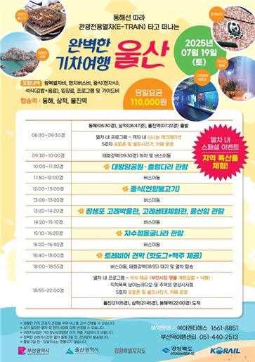 강원 동해역과 삼척역에서 출발한 관광객은 울산 또는 부산 중 원하는 코스를 선택할 수 있다.