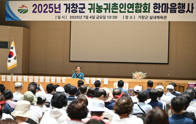 [경남도민뉴스=백형찬 기자] 거창군귀농귀촌인연합회(회장 엄시현)는 지난 4일 거창스포츠파크 실내체육관에서 구인모 거창군수, 신중양 거창군의회 부의장, 도의원 및 군의원, 연합회 회원 등 150여 명이 참석한 가운데 2025년 거창군귀농귀촌인연합회 한마음대회를 성황리에 개최했다.