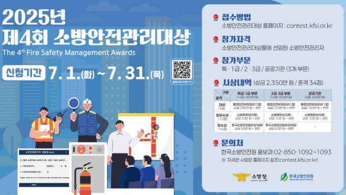 참가분야는 ▲특급‧1급 분야 ▲2‧3급 분야 ▲공공기관 분야 총 3개 분야로 진행되며, 전국의 소방안전관리 대상물에 근무하는 소방안전관리자라면 누구나 신청할 수 있다.