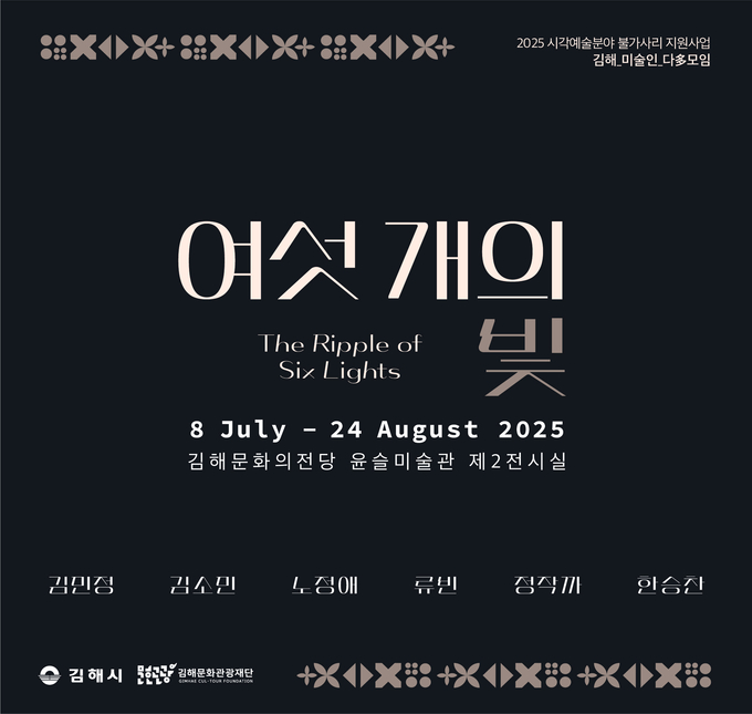 같은 기간 제2전시실에서 열리는 '여섯개의 빛, The Ripple of Six Lights'는 (재)김해문화관광재단이 주관하는 ‘2025 시각예술분야 불가사리 지원사업(김해_미술인_다多 모임)’의 일환으로 마련됐다.