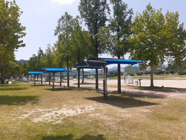 그늘막은 물놀이장이 있는 공간 3곳과 황강과 함벽루를 조망할 수 있는 공간 3곳 등 총 6곳에 설치됐으며, 한여름 무더위를 피해 공원을 찾는 이용객들에게 쉼터를 제공할 것으로 기대된다.