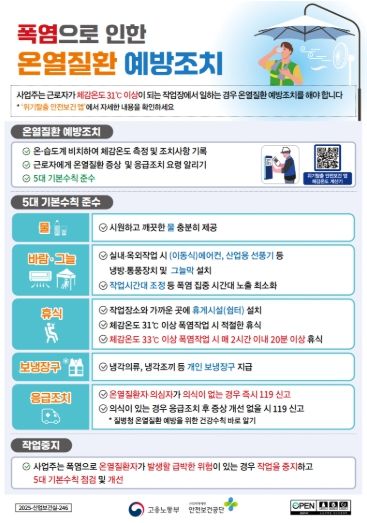 야외작업이 많은 업종이나 고온의 환경에서 일하는 현장의 경우 근로자의 건강과 안전에 각별한 주의가 필요하다며, 철저한 온열질환 예방 지침 준수도 강조했다.