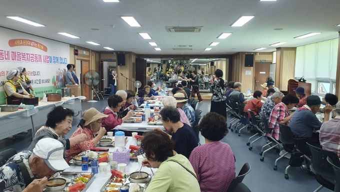 이번 행사는 더위에 지쳐 입맛이 없는 어르신들을 위해 소고기국에 호박나물, 두부조림을 준비하고 체육회에서 기부한 시원한 수박까지 제공됐다.