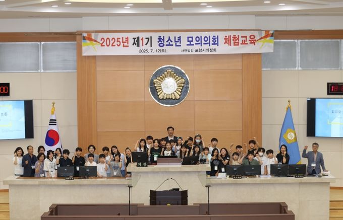 (사)의정회가 주관하고 포항시와 포항시의회, 포항교육지원청이 후원하는‘2025년 청소년 모의의회 체험 교육’은 지역 내 초등학교 5~6학년을 대상으로 지방의회의 기능과 역할을 알리고, 토론 및 민주적 의사결정 과정의 체험을 통해 미래세대의 민주시민 의식 함양을 위해 마련됐다.