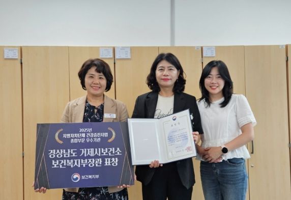 [경남도민뉴스=김부경 기자] 거제시보건소(소장 김영실)는 보건복지부가 주최한 2025년 지방자치단체 건강증진사업 종합부문‘우수기관’으로 선정되어 보건복지부장관 표창을 수상했다.