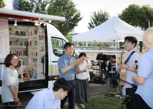 아울러 다양한 공연과 체험 프로그램도 진행됐다. 남녀 혼성 4인조 밴드 ‘오아’와 젊은 청년 색소폰 연주자들로 구성된 색소폰 앙상블 ‘블랭크’의 공연은 무더운 여름밤, 잠시나마 시원한 힐링의 시간을 선사했다. 또, 한강공원을 찾은 다양한 연령대의 주민들을 위해 시와 어울리는 무알콜 칵테일을 맛볼 수 있는 ‘Book · Drink’, 최근 넷플릭스 인기작 ‘케이팝 데몬 헌터스’에 등장하는 까치와 호랑이 등을 활용한 노리개 만들기, 책 속에 작은 정원을 꾸미는 책(꽃)갈피 만들기, 뜨개 키링만들기, 여행하는 서재 자동차 모형 만들기 등 다채로운 체험 프로그램도 운영됐다.