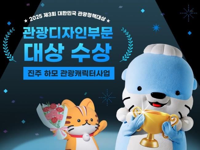 [경남도민뉴스=권중환 기자] 진주시가 관광브랜드 강화와 도시 이미지 제고를 위해 추진해온 ‘진주 하모 관광캐릭터 사업’이 한국관광정책연구학회가 주최한 ‘2025 제3회 대한민국 관광정책대상’에서 관광디자인 부문 대상을 수상하는 쾌거를 이뤘다.