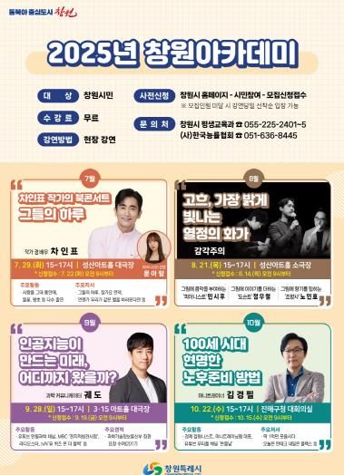 [경남도민뉴스=박민호 기자] 창원특례시가 오는 7월 29일을 시작으로 ‘2025년 창원아카데미’의 막을 연다.