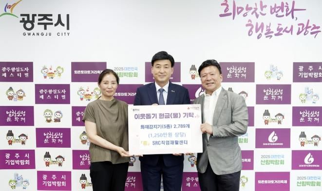 이날 SRC직업재활센터는 화재감지기 5종 2천789개(1천250만 원 상당)를, 광주시청 공무직노동조합은 백미 600㎏(255만 원 상당)을 각각 기부하며 따뜻한 나눔 실천에 동참했다.