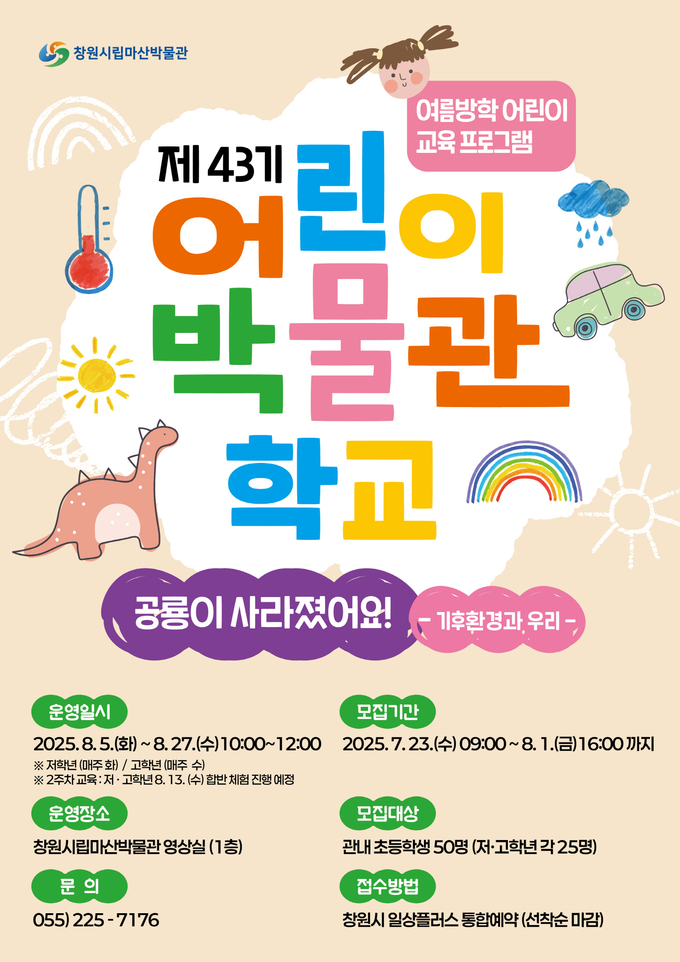 [경남도민뉴스=박민호 기자] 창원특례시는 8월 5일부터 한 달간 창원시 관내 초등학생을 대상으로 ‘제43기 어린이박물관학교’를 운영한다.