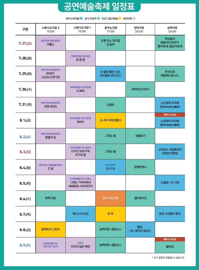 또한, 젊은 창작가들에게 실험적 무대를 제공하는 ‘대학극전’과 ‘차세대 연출가전’이 스튜디오극장 1·2에서 진행된다.
