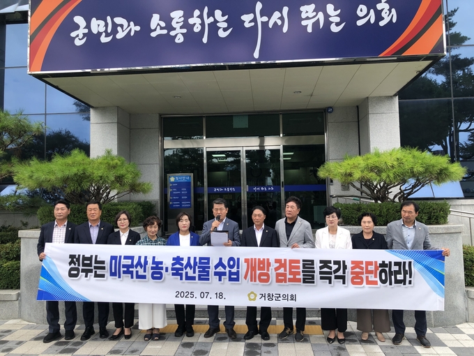 거창군의회 의원 일동은 농·축산인들을 벼랑 끝으로 내모는 미국산 농축산물 수입 개방 검토를 강력히 규탄하며, 정부에 즉각적인 철회를 엄중히 요구한다.