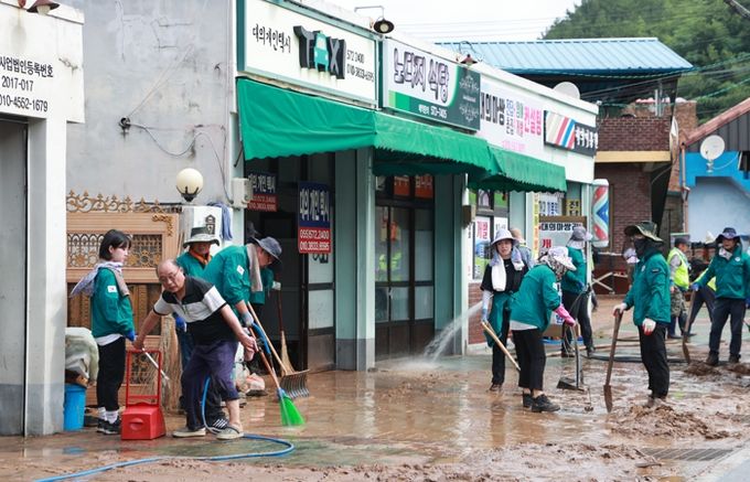 한편 이날 복구 현장에는 전날 피해 소식을 듣고 군민들이 하나둘씩 모여 복구에 힘을 보탰다.