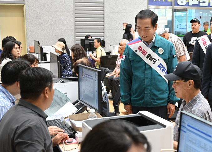 이번 현장 방문은 21일부터 시작된 민생회복 소비쿠폰의 군민 편의 제고와 사업 추진의 실효성을 높이기 위한 조치로, 군수는 신청 안내부터 민원 응대, 폭염 대응 상황 등 전반을 점검하고, 군민에게 직접 쿠폰을 배부하는 '1일 근무자'로도 참여해 현장 중심 행정을 실천했다.