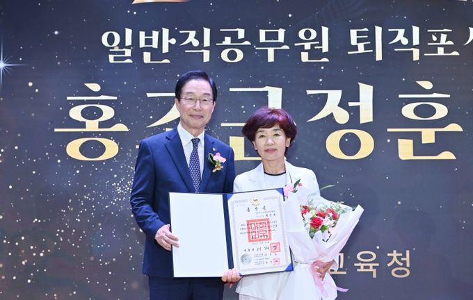 전수식에서는 △홍조근정훈장 2명 △녹조근정훈장 12명 △옥조근정훈장 19명 △근정포장 8명 △대통령표창 2명 △국무총리표창 8명 등 총 51명이 재직 중 성실한 직무 수행과 교육발전에 이바지한 공로로 퇴직 포상을 받았으며, 성실하고 창의적인 자세로 본연의 업무를 수행해 온 △국무총리 모범공무원 28명에 대한 표창 전수도 함께 진행됐다.