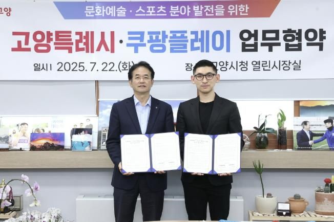[경남도민뉴스=김동규 기자] 고양특례시는 지난 22일 시청 열린시장실에서 쿠팡플레이와 문화예술 및 스포츠 분야의 발전을 위한 업무협약(MOU)을 체결했다고 밝혔다.