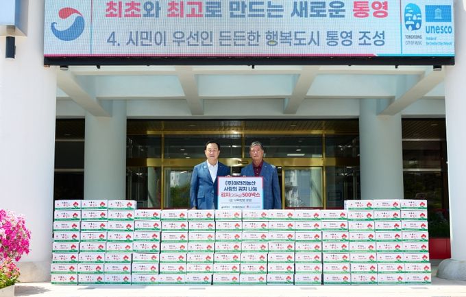 천영기 통영시장은 “우리 이웃들에게 따뜻한 한 끼를 선물해주신 ㈜아라리농산에 깊이 감사드린다”며 “소중한 마음이 이웃들에게 고스란히 닿을 수 있도록 하겠다”고 말했다.
