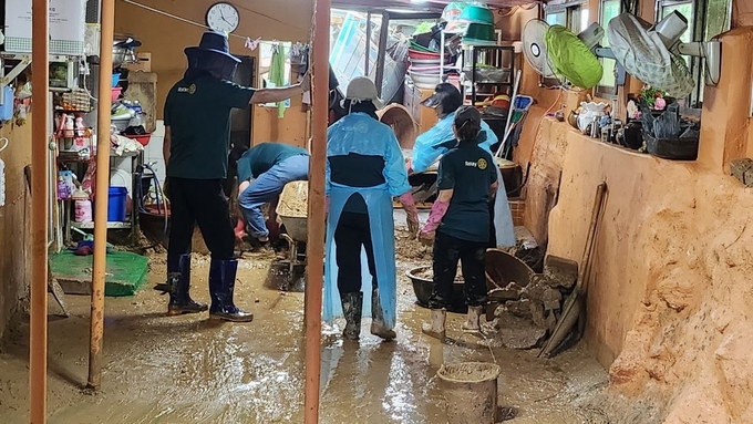 지난 21일 함양군 청년봉사단과 거창군 당협 부위원장단을 통해 구호물품을 지원하기 시작했다. 이번 수해 복구의 중심에는 국민의힘과 전국의 자원봉사자들이 있었다. 이들은 ‘함께하는 복구’를 모토로 피해 지역에 힘을 보탰다. 이후 산청군 당원들이 침수 주택의 토사 제거와 살림살이 정리를 도우며 구슬땀을 흘렸다.