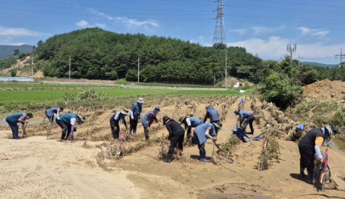 이번 봉사활동에는 거창군 이장연합회 소속 이장 14여 명이 자발적으로 참여해 침수된 농경지 농작물 제거 작업 및 파손 농자재 수거, 침수지역 수해 쓰레기 수거와 오염된 집기류 세척 및 청소 등 복구 작업에 힘을 보탰다. 특히 고령 주민들이 거주하는 마을에 인력이 부족한 상황을 고려해, 직접 삽 등을 들고 발 벗고 나서며 복구에 힘을 보탰다.