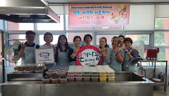 이 사업은 2025년 경상남도자원봉사센터 우수프로그램 공모사업으로 선정된 사업으로 관내 독거 어르신 등 취약계층 30가구에 자원봉사자들이 제철 식재료들을 이용하여 직접 조리하여 배달한다.
