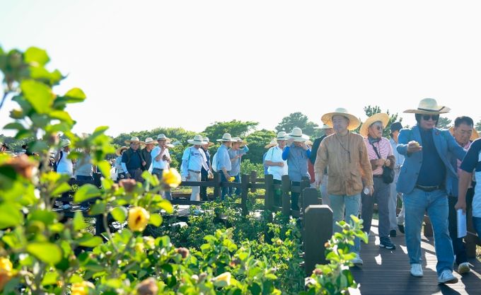 참가자들은 오조리사무소에서 출발해 족지물과 식산봉 둘레길을 거쳐 출발점으로 돌아오는 약 2km 구간의 걷기코스를 걸었으며, 특히 데크길에서는 황근 씨앗을 직접 뿌려 황근숲 확산에 동참했다.