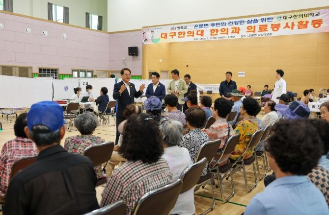 김하수 청도군수는 “대구한의대와의 협력으로 의료 접근성이 낮은 지역 주민들에게 양질의 한의과 진료를 제공할 수 있어 뜻깊다”며 “앞으로도 매월 정기적인 봉사활동을 통해 주민들의 건강증진을 적극 지원하겠다”고 말했다.