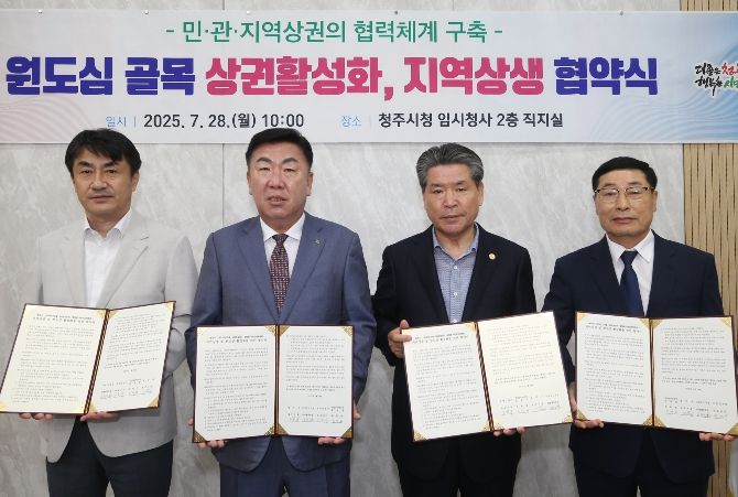 이날 임시청사 직지실에서 진행된 협약식에는 이범석 청주시장, 김원익 ㈜KCC건설 총괄본부장, 윤현우 삼양건설㈜ 대표이사, 안석봉 중앙동 주민자치위원회 위원장이 참석했다.
