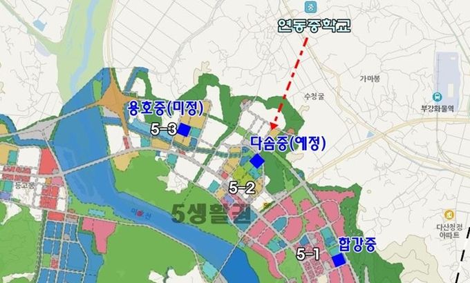 반면, 행복도시 5-1생활권 스마트시티 조성과 함께 가칭 합강1초, 합강중 등의 학교를 설립 중이며, 2029년에는 5-2생활권(다솜동) 내 각급학교 신설을 계획 중에 있다. 5생활권 입주가 본격화 되면 연동면 인구 유출이 가속화되고, 연동중학교의 소규모화가 더욱 심각해질 것으로 예상된다.