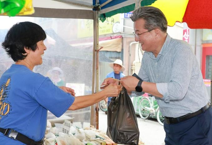 [경남도민뉴스=도문호 기자] 대전 유성구는 29일 유성시장에서 민생 회복 소비 쿠폰 지급에 맞춰 구청 직원이 참여하는 ‘민생 회복 소비 촉진 장보기 행사’를 진행했다.