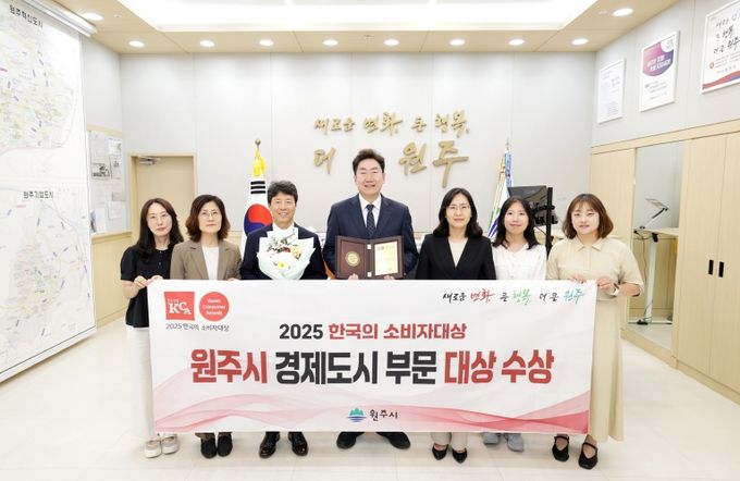 [경남도민뉴스=류종길 기자] 원주시는 지난 29일 더 플라자 호텔 서울에서 열린 ‘2025 한국의 소비자대상’ 시상식에서 경제도시 부문 대상을 수상했다.
