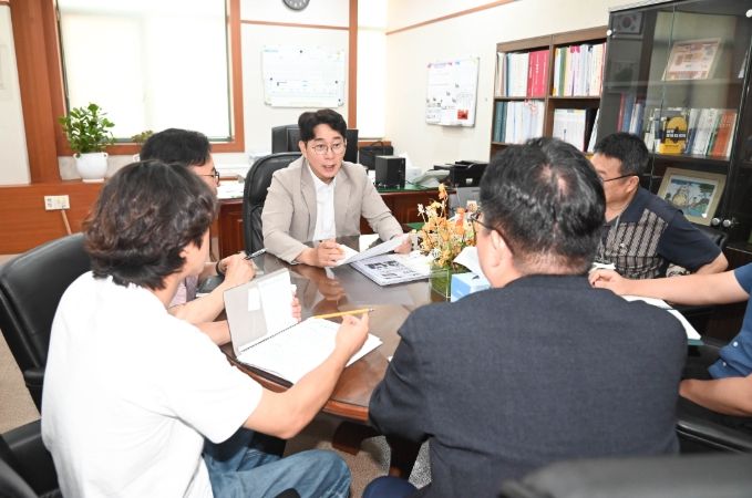 [경남도민뉴스=최재경 기자] 방인섭 울산시의원은 30일 오전 시의회 예결위원장실에서 남구 삼산동 지선 시내버스 노선 조정협의를 위한 간담회를 열었다. 이날 간담회에서는 울산시 버스택시과, 시의회 산업건설전문위원실 및 특별전문위원실 공무원 등 관계자들이 함께 했다.