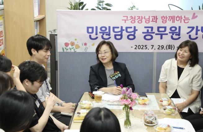 간담회는 박 구청장의 격려 인사에 이어 현장 건의사항 청취, 질의응답 등으로 진행됐다. 박 구청장은 “현장의 작은 불편과 목소리 하나하나가 구정 운영에 있어 매우 소중한 자산”이라며 “오늘 민원담당 공무원들의 건의사항 중에서 실현 가능한 개선 과제부터 신속히 검토하고, 제도적으로 반영해 나가겠다”고 말했다.