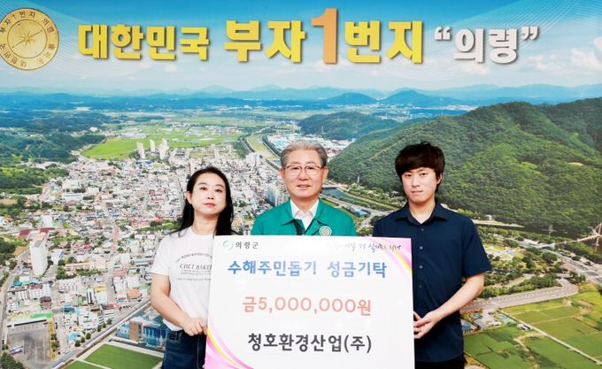 [경남도민뉴스=이상민 기자] 의령군은 청호환경산업(주)이 최근 집중호우로 큰 피해를 입은 의령 지역 수해 이재민들을 위해 성금 500만원을 기탁했다고 31일 밝혔다.