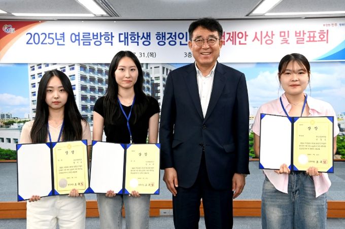 [경남도민뉴스=권중환 기자] 진주시는 31일 시청 3층 문화강좌실에서 ‘2025년 여름방학 행정인턴 사업’에 참여한 학생 60명을 대상으로 우수시책 제안자 시상식과 발표회를 가졌다.