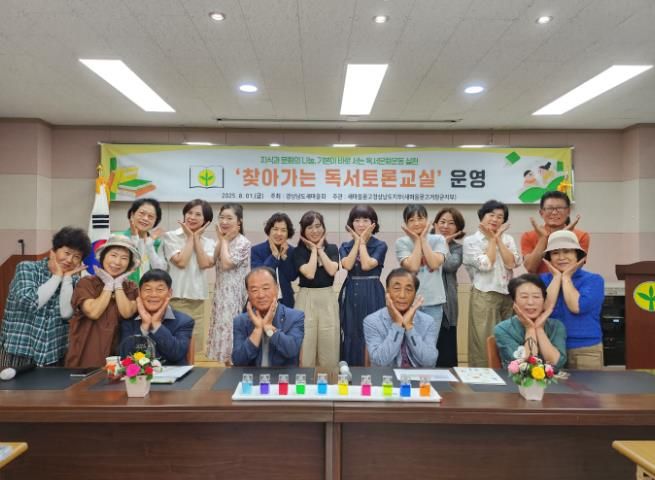 한편 찾아가는 독서 토론교실은 새마을문고경상남도지부의 주관으로 독서문화 확산 활동의 일환으로 기획됐으며, 정기적인 독서모임과 토론을 통해 지역사회에 공감과 소통의 문화를 넓혀가고 있다.