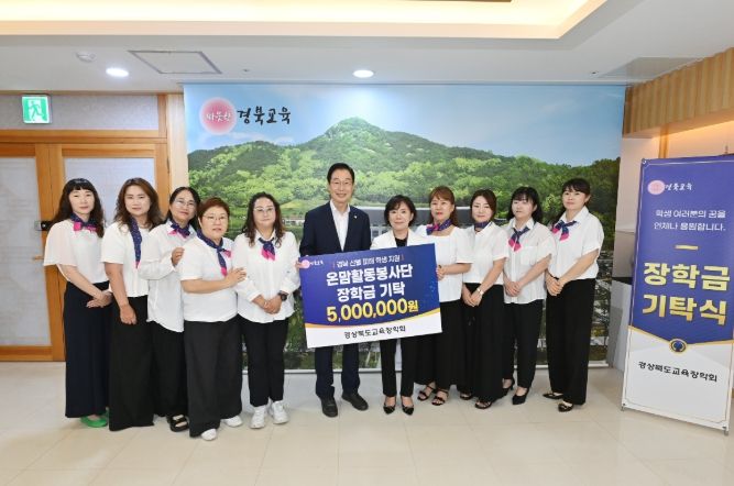 [경남도민뉴스=오창경 기자] 재단법인 경상북도교육장학회(이사장 임종식)는 4일 본청 접견실에서 포항 지역 학부모 봉사단체인 온맘활동봉사단(단장 정다윤)으로부터 장학금 500만 원을 기탁받았다고 밝혔다.