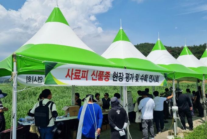 [경남도민뉴스=김병현 기자] 창녕군은 지난 5일 국립축산과학원과 장마면 동정리 실증 재배지에서 고온다습한 여름철 논에서도 안정적으로 자라는 사료피 재배 기술을 소개하고 현장 실용성 평가를 위한 ‘사료피 신품종 현장 평가 및 수확 연시회’를 개최했다.