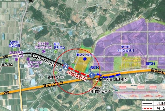 빛그린산단은 자동차부품, 전기차 배터리 등 첨산단업 유치가 활발한 전남의 전략 거점 지역으로, 인근 월야면 소재지와 산단 접근성을 개선해 지역 및 산단 활성화에 큰 도움이 될 것으로 기대된다.