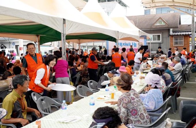 [경남도민뉴스=장광동 기자] 함양불교봉사회는 8월 9일 토요일 지리산함양시장 제1주차장에서 군민들을 대상으로 ‘행복 자비나눔 무료 급식’ 행사를 열었다.