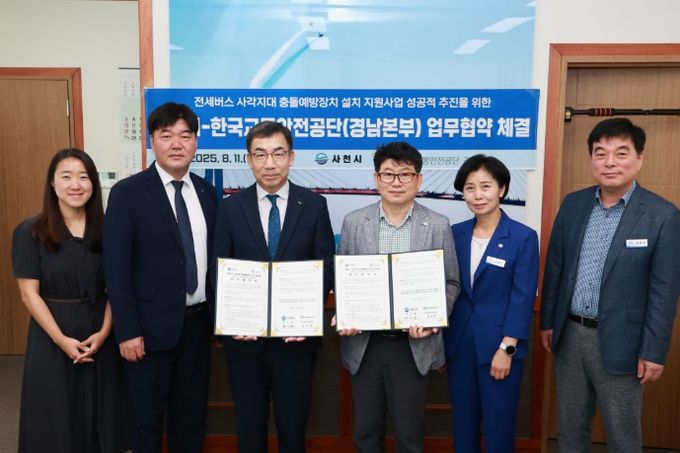 [경남도민뉴스=변정형 기자] 사천시는 한국교통안전공단 경남본부와 ‘사천시 전세버스 사각지대 충돌예방장치 지원사업’을 추진하기 위한 업무협약을 체결했다고 11일 밝혔다.