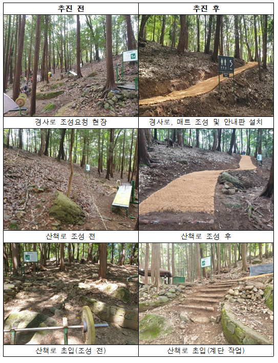 박 시장은 이날 현장에서 추자골 경사면 화장실 출입로 개선, 노후 운동매트 교체, 야간 보행자 안전을 위한 보안등 추가 설치 등 민원 조치 사항을 시민과 함께 확인한다.