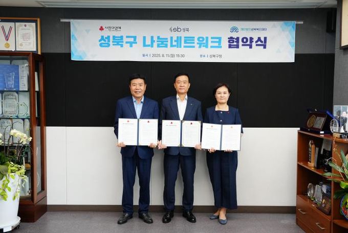 [경남도민뉴스=윤장희 기자] 서울 성북구가 11일 성북복지재단과 서울사회복지공동모금회와 함께 ‘성북구 나눔네트워크’ 협약(MOU)을 체결했다. 이번 협약은 지난 7월 1일 공식 출범한 성북복지재단의 첫 대외 협력으로, 민·관 협력을 통한 촘촘한 복지 안전망 구축과 나눔 문화 확산의 기반이 될 전망이다.