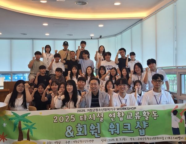 [경남도민뉴스=백형찬 기자] 거창군은 지난 7일 구미강동청소년문화의집에서 2025 청소년참여기구 연합교류활동 및 회원 워크숍을 성황리에 개최했다. 이번 교류는 양 기관의 청소년참여기구 활성화와 청소년 역량 강화를 위해 마련됐으며, MOU 협약체결에 따라 처음 진행된 공동 활동이다.