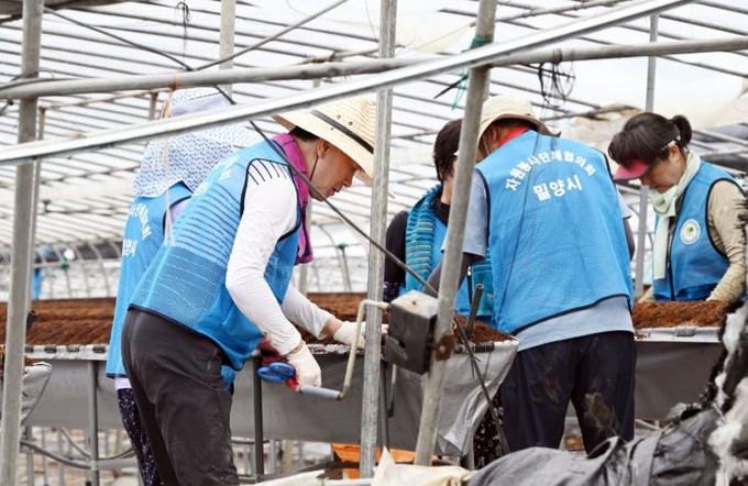 시는 14일에도 농어촌공사 밀양지사 직원과 시 공무원 등 60여 명이 참여해 해당 농가의 복구작업을 이어갈 예정이다.